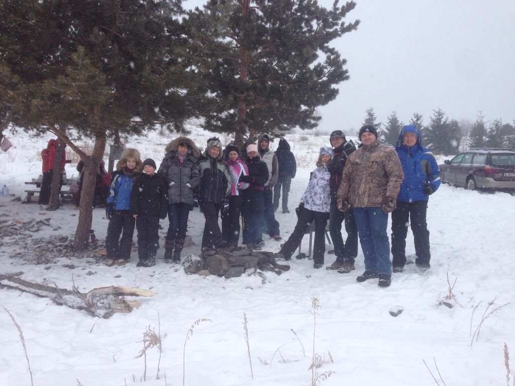 Почти все, вместе греются у костра ...